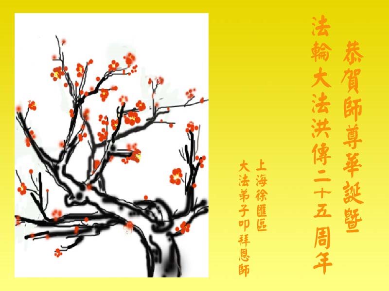 上海大法弟子恭祝慈悲伟大的师尊华诞暨祝贺5?13法轮大法洪传二十五周年和世界法轮大法日!