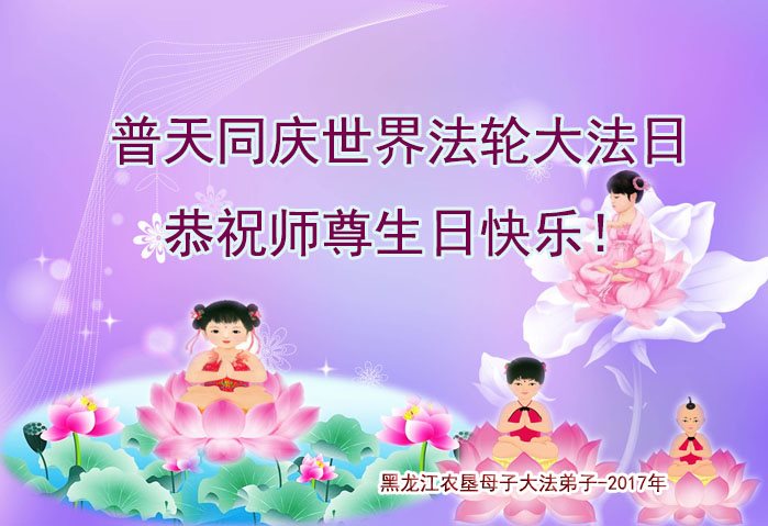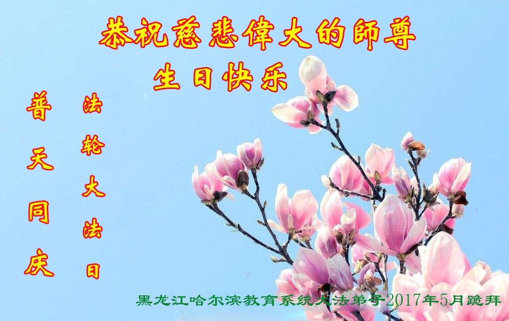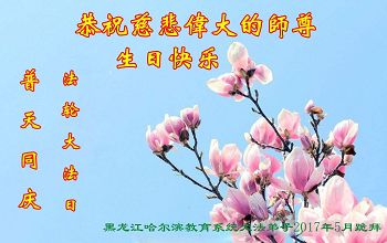 黑龙江哈尔滨教育系统大法弟子恭祝慈悲伟大的师尊生日快乐!恭贺世界法轮大法日!庆祝法轮大法洪传25周年!