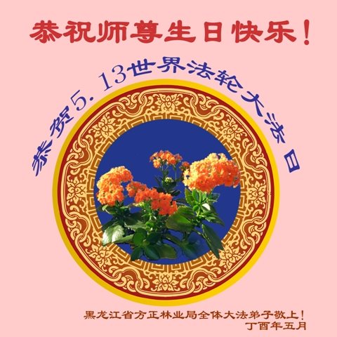 胜利油田大法弟子恭祝师尊生日快乐!恭贺世界法轮大法日! 黑龙江省方正林业局全体大法弟子恭祝师尊生日快乐!