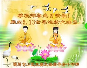 在这全世界喜庆的时刻,我们四人老年学法小组祝师尊生日快乐!弟子无以为报,只能精進实修,踏踏实实的做好三件事,让师尊少一份操心,多一份欣慰,早一天随师返回真正的家园。再次叩拜师尊! 吉林大学第一医院大法弟子祝师父生日快乐!暨“5.13”世界法轮大法日!