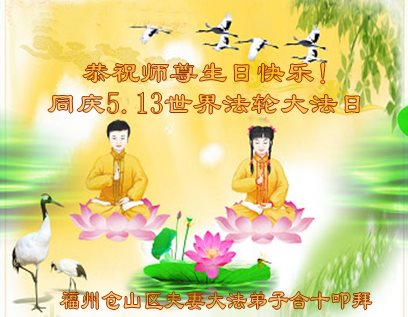 福建省福州市仓山区一对夫妻大法弟子恭祝慈悲伟大的师尊生日快乐!同庆5.13世界法轮大法日!