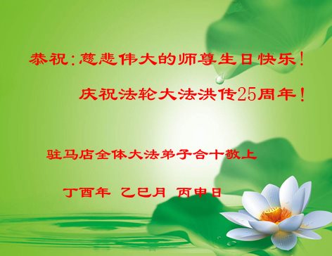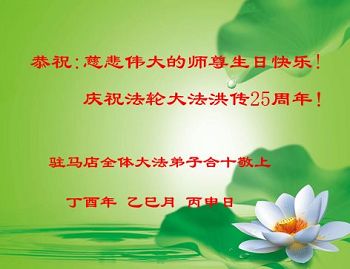 河南省驻马店市全体大法弟子恭祝师尊生日快乐!暨法轮大法日!