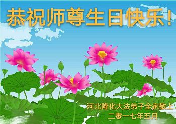【明慧网二零一七年五月十二日】 吉林省长春一老年大法弟子学法小组恭祝师尊生日快乐!