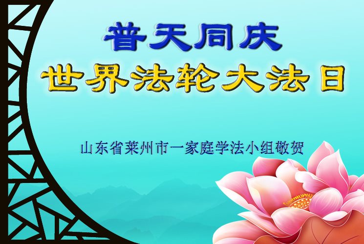 山东省烟台市莱州市一家庭学法小组恭贺5.13世界法轮大法日!