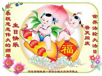 广东大法弟子全家恭贺法轮大法日!恭祝师父生日快乐!