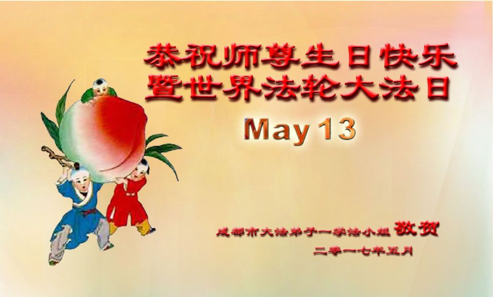 四川成都一学法小组全体大法弟子恭祝慈悲伟大的师尊生日快乐!恭贺世界法轮大法日!