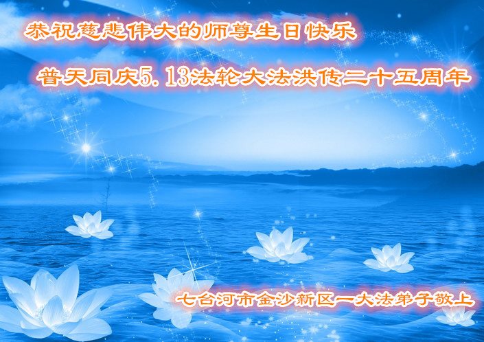 大法弘传25载,普天同庆5.13 黑龙江七台河市金沙新区一大法弟子恭祝慈悲伟大的师尊生日快乐!