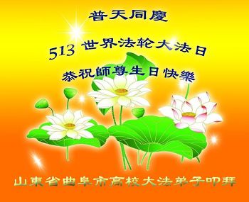 恭祝慈悲伟大的师尊生日快乐!师父您好!师父您辛苦了! 普天同庆513世界法轮大法日! 山东省曲阜市高校大法弟子恭贺世界法轮大法日!