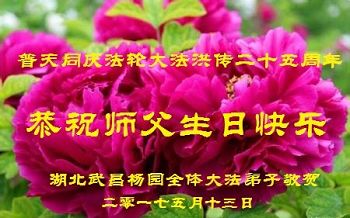 黑龙江哈尔滨市青年大法弟子恭祝师父生日快乐!恭贺法轮大法日! 真善忍好!法轮大法好! 湖北武昌杨园全体大法弟子恭祝师父生日快乐!