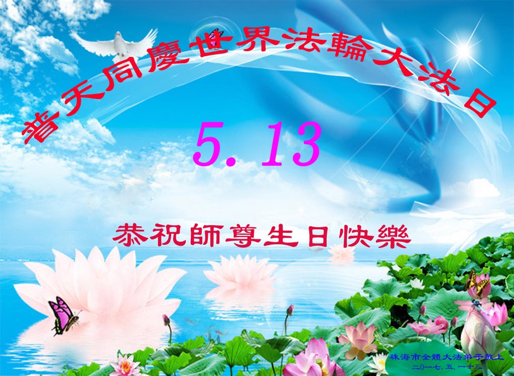 广东省珠海全体大法弟子恭祝慈悲伟大的师尊生日快乐!同庆5.13世界法轮大法日!