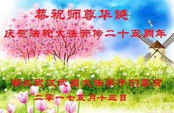 湖北武昌大法弟子们恭祝师尊华诞!庆贺大法开传二十五周年!