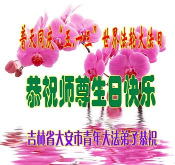 吉林省白城市大安市青年大法弟子恭祝普天同祝世界法轮大法日!恭祝师尊生日快乐!