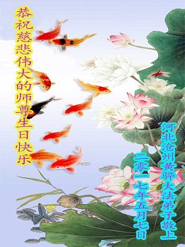 我们一定谨记师尊的教诲,在修炼的这条路上勇猛精進、精進、再精進,做好三件事,多救人、快救人。感谢师尊的慈悲救度!弟子们叩拜、叩拜、再叩拜!愿师尊笑口常开,师尊您辛苦了! 四川省泸州市合江县大法弟子恭祝慈悲伟大的师尊生日快乐!