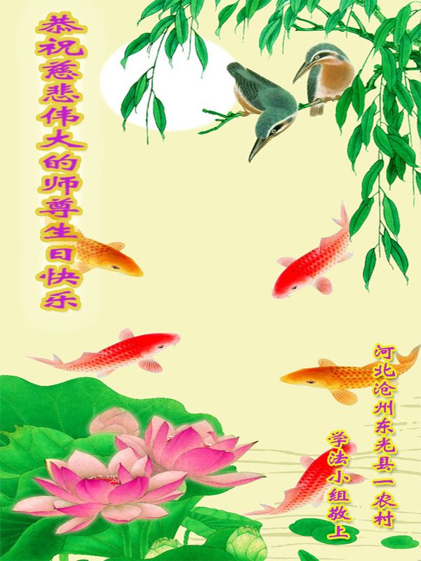 师父我是您的小弟子,我非常想念师父。谢谢师父救命之恩!我知道师父每时每刻都在呵护着我,我一定要听师父的话,修圆满了跟着师父回美好的家园。 河北省沧州市东光县一农村学法小组恭贺法轮大法日!