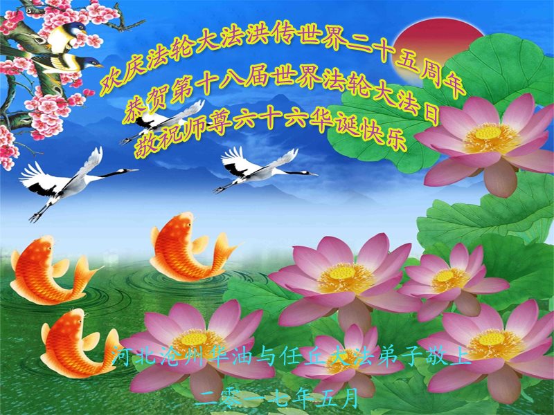 河北沧州泊头市大法弟子恭祝师尊生日快乐!祝贺世界法轮大法日!