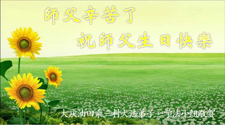 师父辛苦了! 大庆油田乘三村全体大法弟子恭祝慈悲伟大的师尊华诞!普天同庆世界法轮大法日!