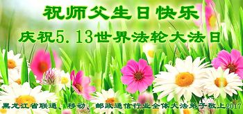 黑龙江联通、移动、邮政通信行业大法弟子恭祝师父生日快乐!庆祝世界法轮大法日!
