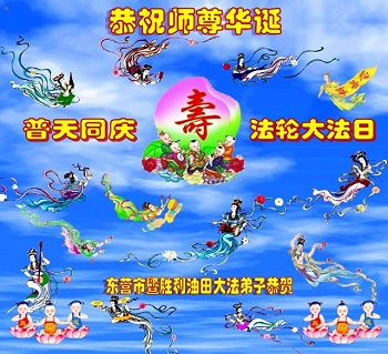 胜利油田大法弟子恭祝师尊生日快乐!普天同庆法轮大法传世二十五周年暨法轮大法日!