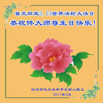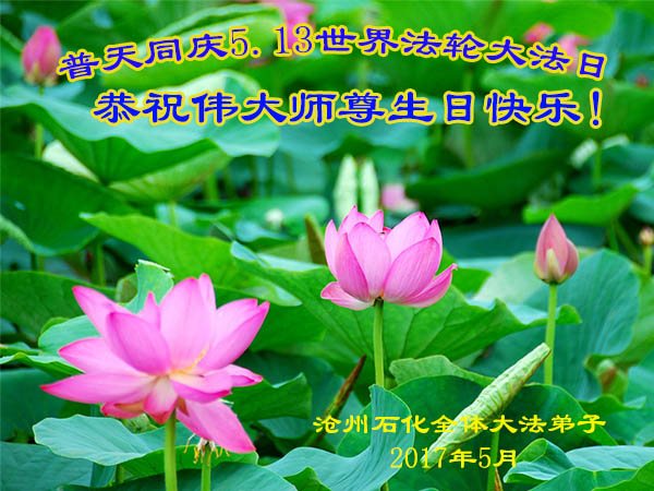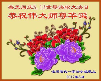 河北沧州石化全体大法弟子恭贺法轮大法日并祝师父生日快乐!