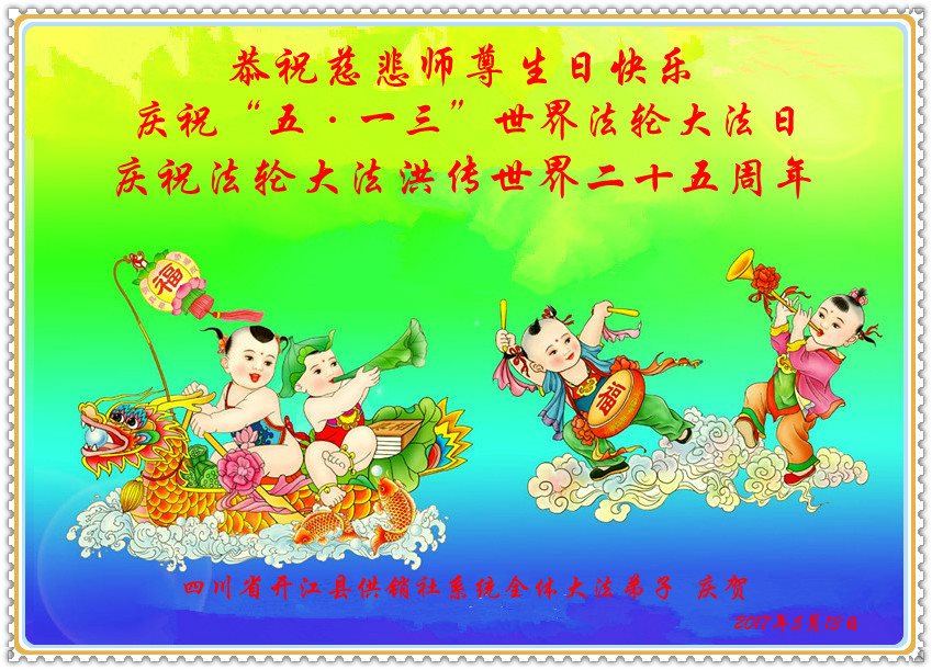 四川省开江县供销社系统全体大法弟子恭祝慈悲师尊生日快乐!