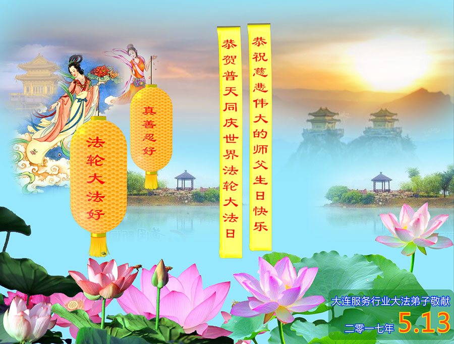大连服务行业大法弟子恭贺慈悲伟大的师父生日快乐!庆贺5.13世界法轮大法日!