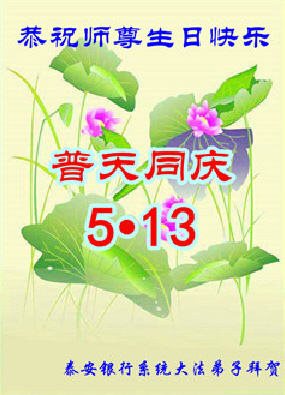 中国人民银行大法弟子恭祝师父生日快乐!恭贺世界法轮大法日!