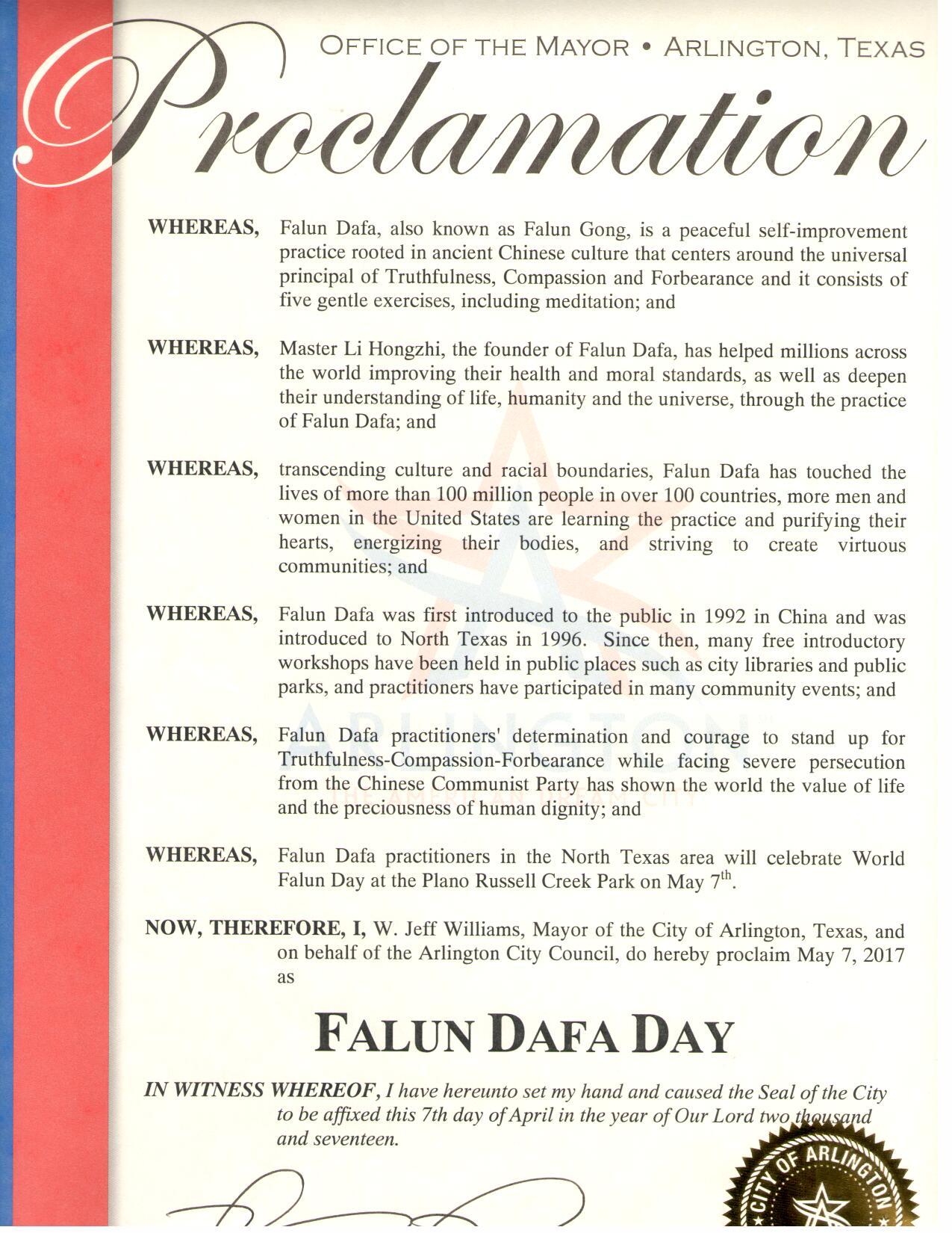 图4:美国德州阿灵顿市宣布“法轮大法日” |