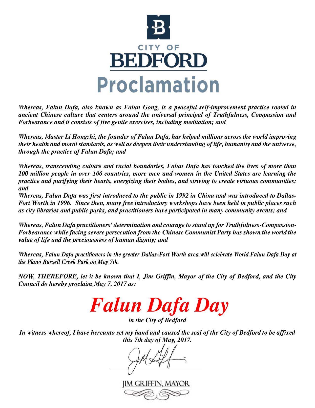 图5:美国德州伯德福特市宣布“法轮大法日” |