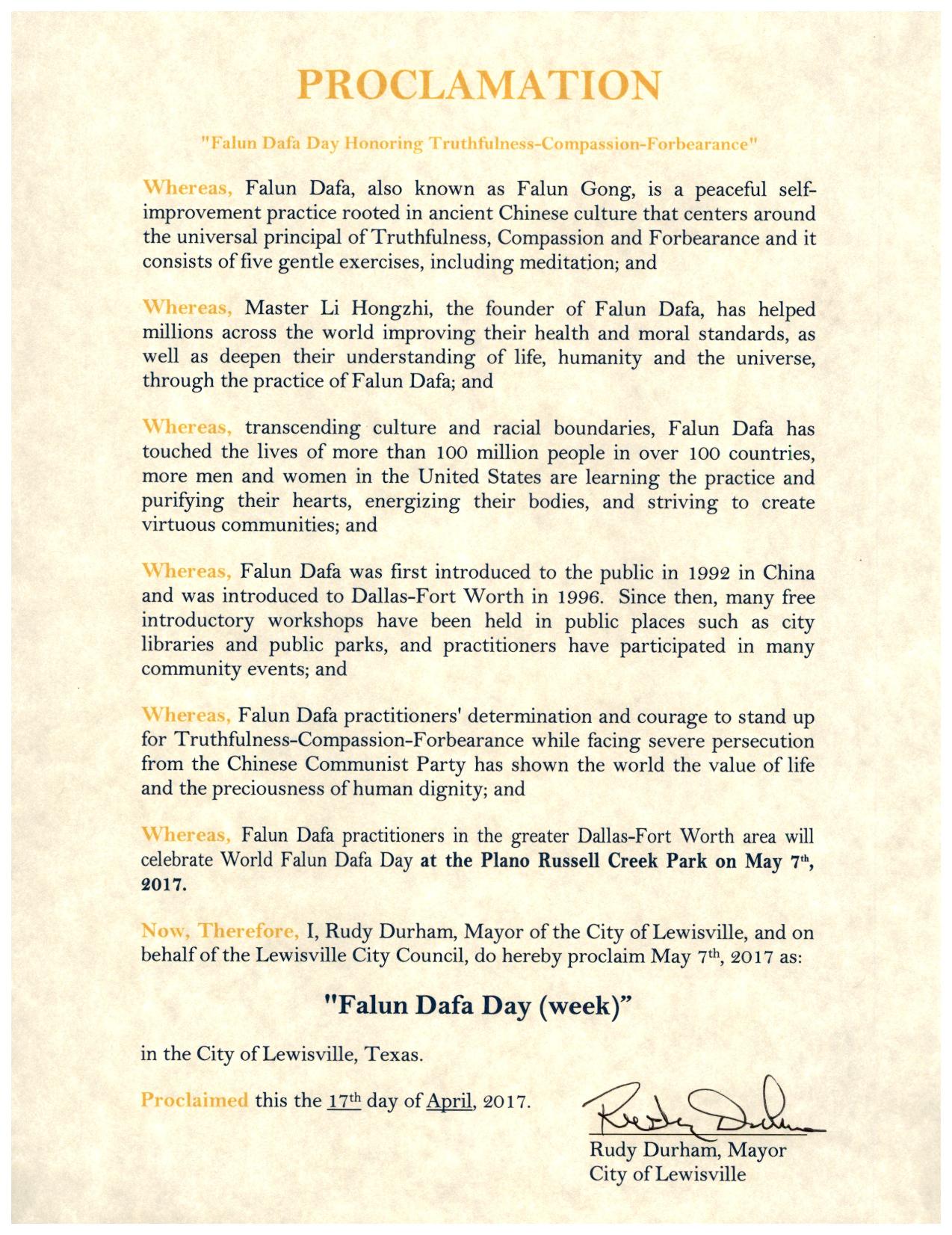 图8:美国德州路易斯维尔市宣布“法轮大法日” |