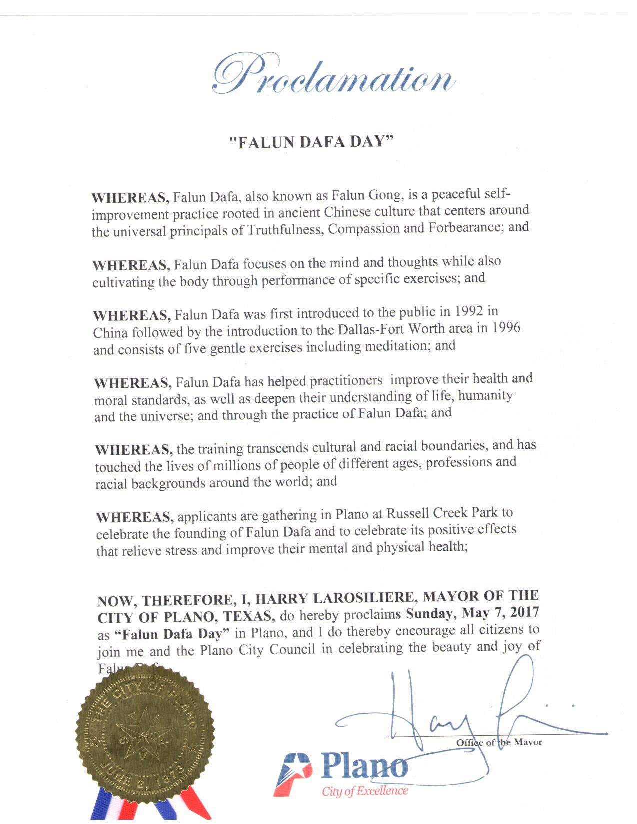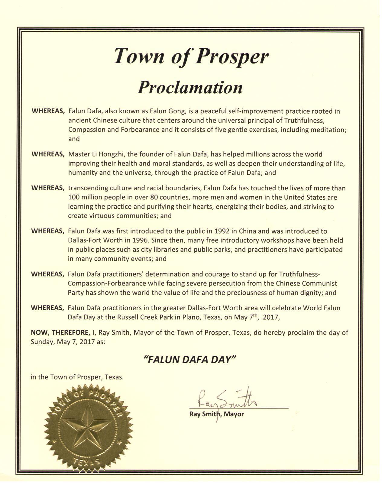 图10:美国德州珀若斯坡市宣布“法轮大法日” |