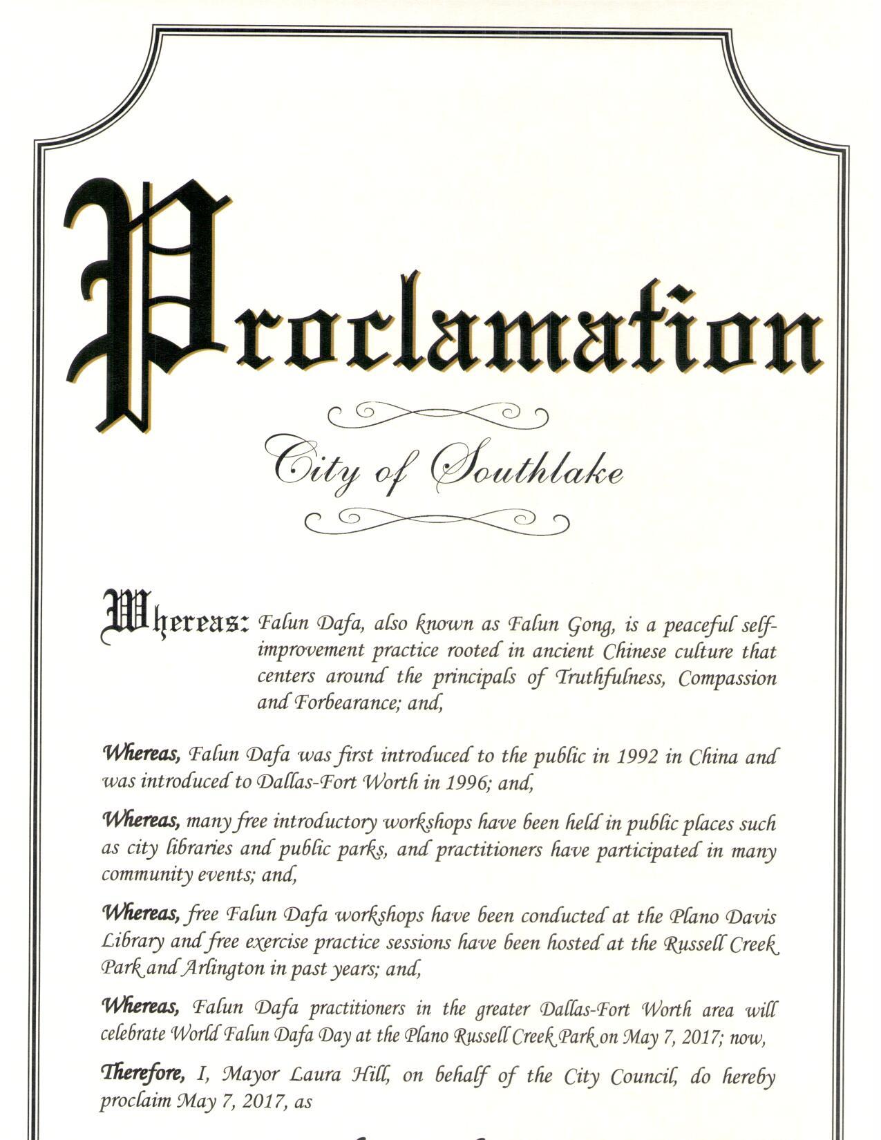 图11:美国德州南湖市宣布“法轮大法日” |