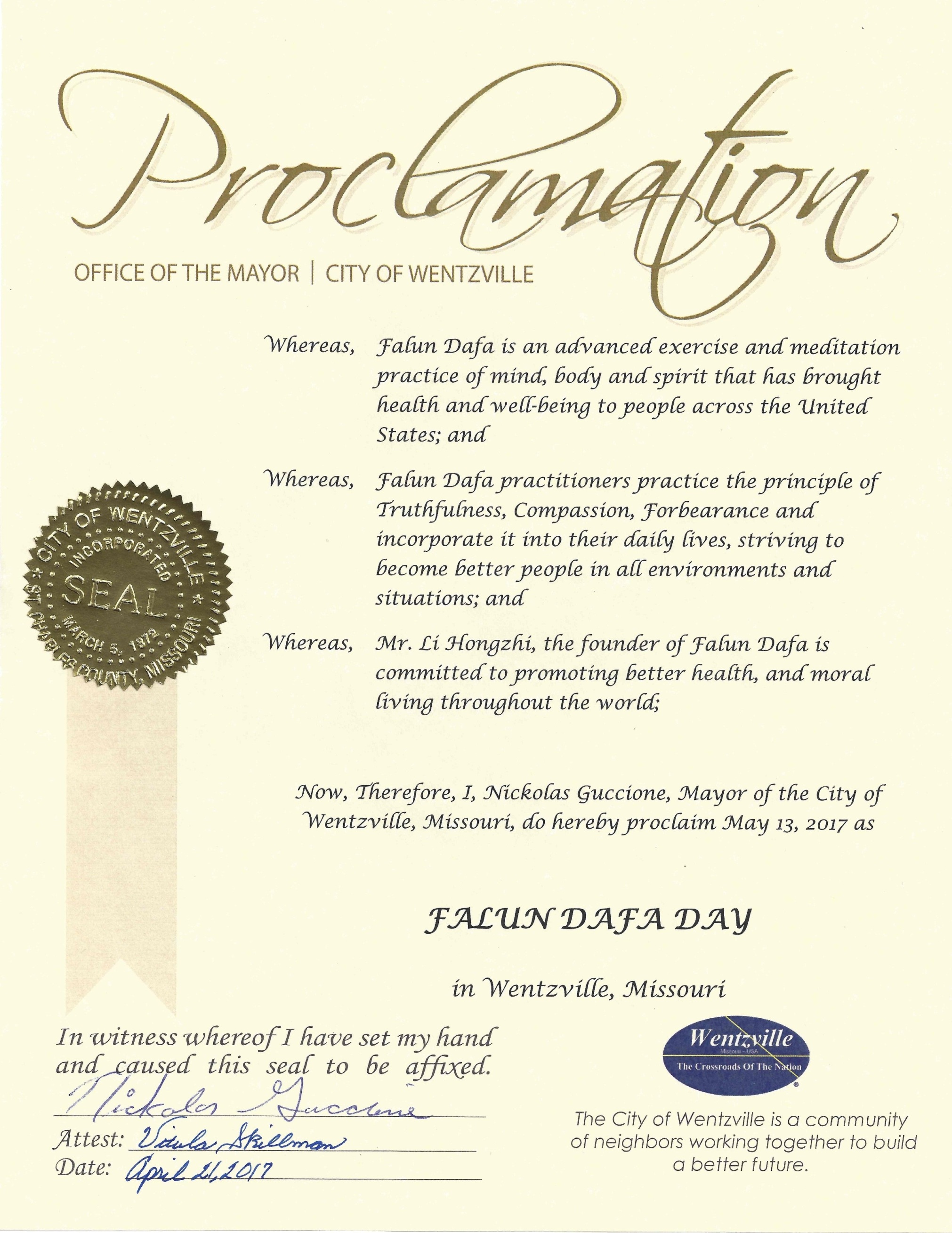 密苏里州温茨维尔市( Wentzville)宣布法轮大法日