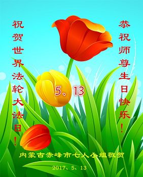 【明慧网二零一七年五月十二日】 内蒙古赤峰市元宝山区平庄学法小组恭贺法轮大法日,恭祝师尊生日快乐!