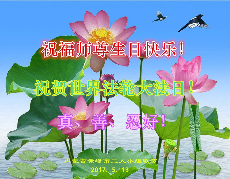内蒙古自治区赤峰一大法弟子恭祝师尊生日快乐!贺世界法轮大法日!