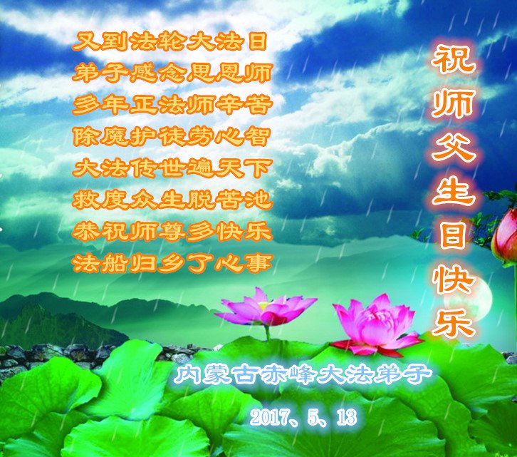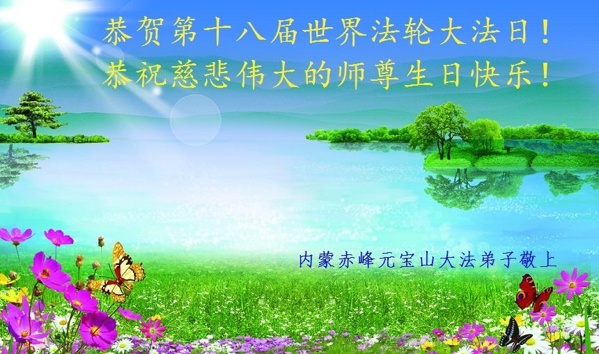内蒙古自治区赤峰元宝山大法弟子恭祝师父生日快乐!恭贺法轮大法日!