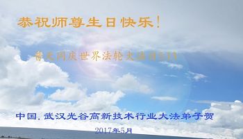 【明慧网二零一七年五月十二日】 中国湖北省武汉光谷高新技术行业大法弟子恭祝师尊生日快乐!
