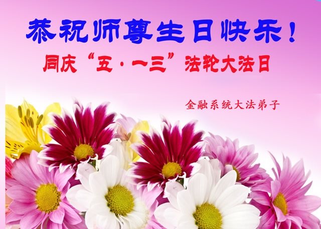恭贺法轮大法洪传二十五周年!恭祝慈悲伟大的师尊生日!恭贺5.13世界法轮大法日! 吉林省吉林市金融系统大法弟子敬上 黑龙江省黑河地区北安市粮食系统大法弟子恭祝师尊生日快乐!
