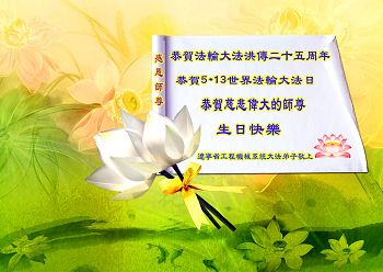 大陆国土资源系统大法弟子衷心恭祝慈悲伟大的师尊生日快乐!祝贺世界法轮大法日!