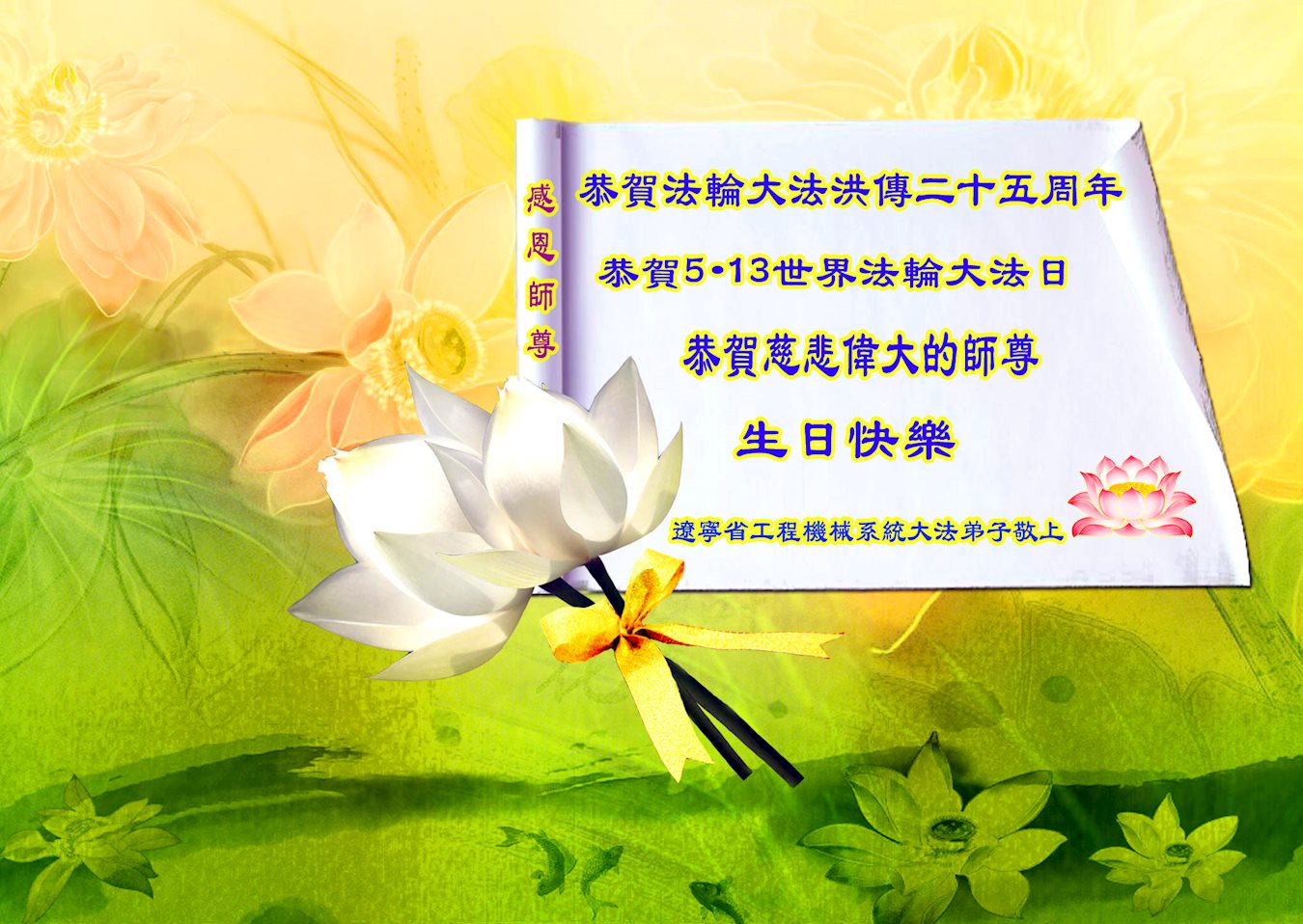 辽宁省工程机械系统大法弟子恭贺法轮大法日!恭祝慈悲伟大的师尊生日快乐!