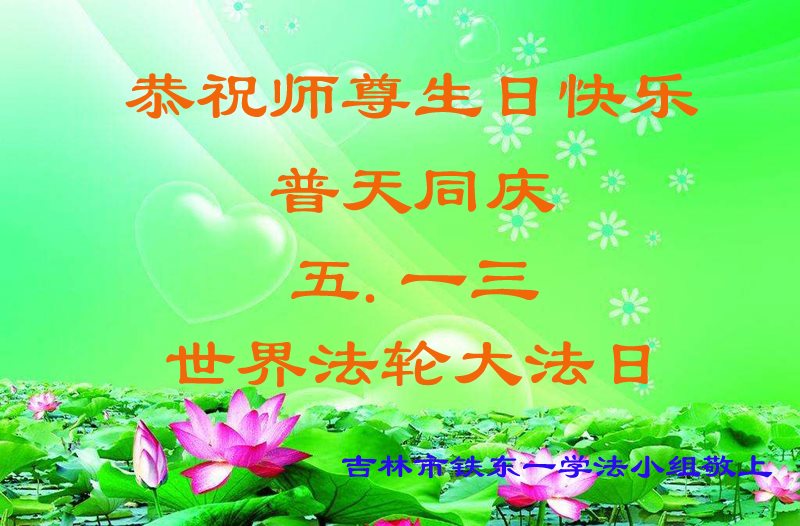 吉林市一学法小组大法弟子及明真相家属,亲属恭祝慈悲伟大的师尊生日快乐!普天同庆世界法轮大法日!