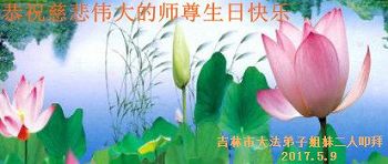 吉林市一家大法弟子叩拜! 二零一七年五月十一日 吉林省吉林市大法弟子恭祝师父生日快乐!