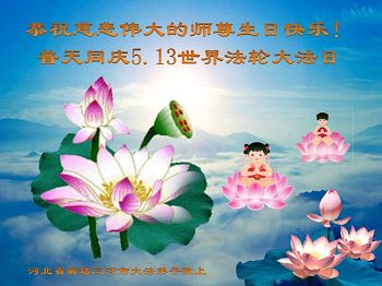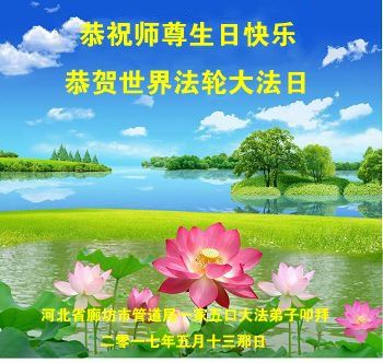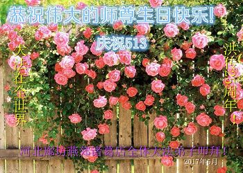 【明慧网二零一七年五月十二日】 河北廊坊三河市大法弟子恭祝慈悲伟大的师尊生日快乐!