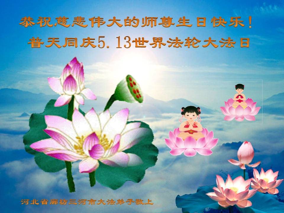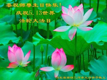 河北省廊坊市三河市学法小组全体大法弟子:恭贺世界法轮大法日!恭祝师尊生日快乐!
