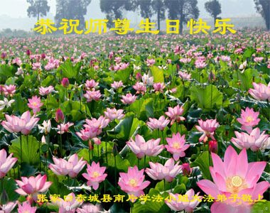 河北省张家口市大法弟子恭祝慈悲伟大的师尊生日快乐!