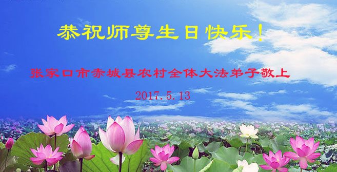 【明慧网二零一七年五月十二日】 河北省张家口市蔚县大法弟子恭贺世界法轮大法日!