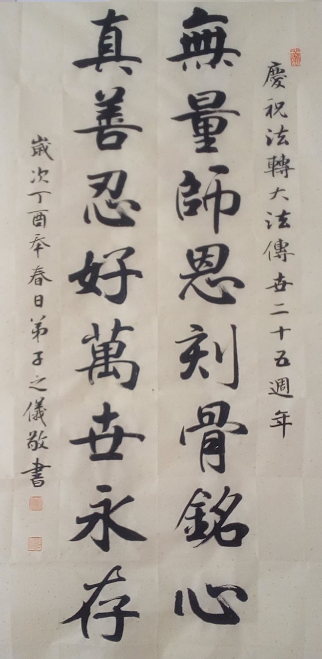 祝师尊生日快乐!祝世界法轮大法洪传25周年! 本溪三兄妹盼师尊早日回国。 辽宁本溪市大法弟子恭贺世界法轮大法日