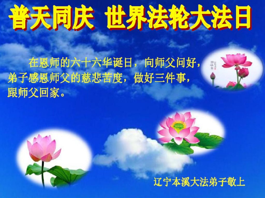 辽宁本溪大法弟子恭祝师尊生日快乐!同贺世界法轮大法日!