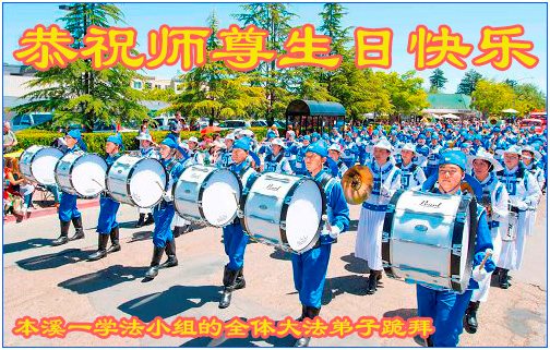 辽宁省本溪一学法小组的大法弟子恭祝慈悲伟大的师尊生日快乐! 我们学法小组的全体大法弟子,在正法進入尾声的最后时刻,一定要更加坚定的走好、走正最后的正法路。我们有信心——助师正法兑誓约 邪恶骚扰不畏惧, 坚定正念救人急。 正念升起邪恶灭, 助师正法兑誓约。 本溪一学法小组的全体大法弟子:跪拜师尊谢师恩! 辽宁本溪市大法弟子恭贺世界法轮大法日!恭祝师父生日快乐!