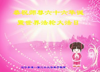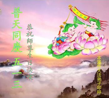 早上在看书学法时,突然感到今天很特别,我感到大法书很亮,虽然我是闭着修的,什么也看不到,但就是感到今天的日子不一样。恭祝师父生日快乐! 辽宁本溪大法弟子恭祝慈悲伟大师尊华诞!