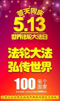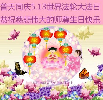 普天同庆“5.13”世界法轮大法日! 江西九江农业银行大法弟子恭祝恩师生日快乐! 江西省九江市都昌县全体大法弟子恭贺世界法轮大法日!恭祝师尊生日快乐!
